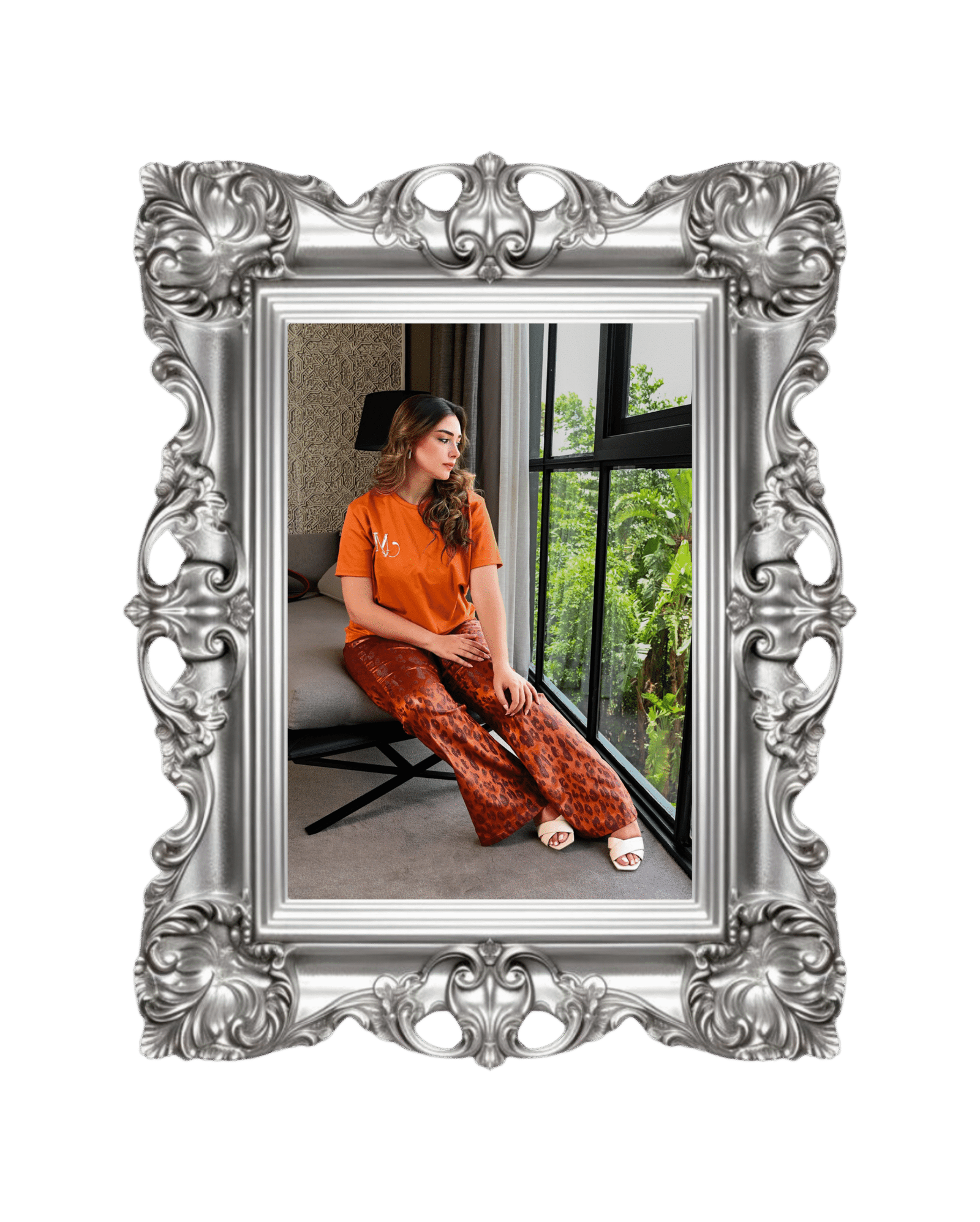 Le pantalon “Attractive” est une pièce captivante qui attire l’attention grâce à son tissu imprimé léopard dynamique et sa couleur orange vibrante. Confectionné à partir de matériaux de haute qualité, ce pantalon allie confort et style, offrant une coupe flatteuse qui met en valeur la silhouette tout en garantissant une liberté de mouvement optimale.